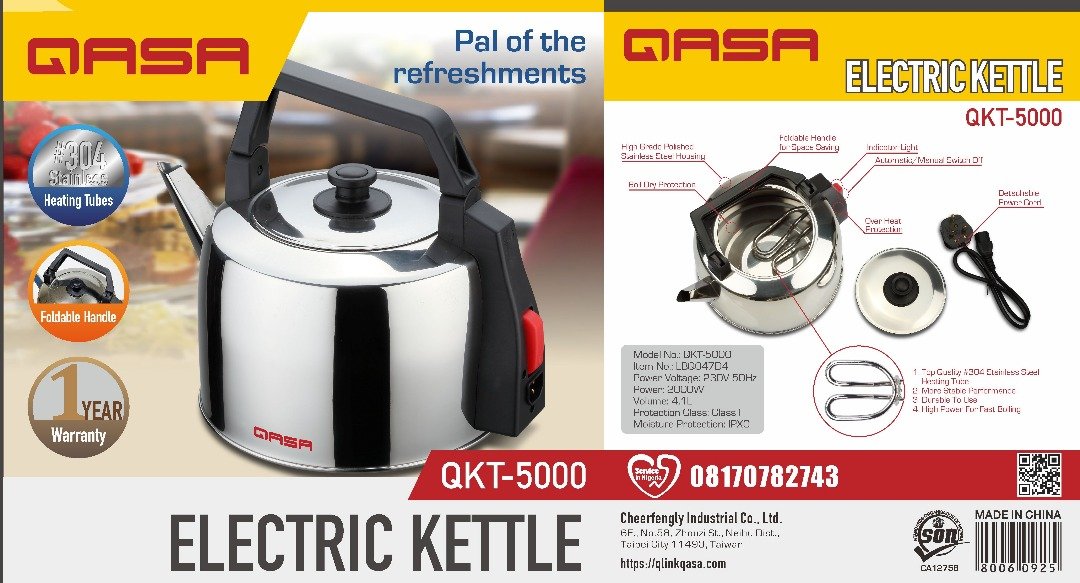 The Qasa Electric Kettle is designed for fast and efficient boiling of water for everyday use. It is ideal for homes, offices, hostels, and small businesses, making it easy to prepare tea, coffee, noodles, and other hot beverages in minutes.